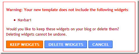 3. Now Save the Template and you will see a confirmation about deleting the Navbar Widget. Confirm the Deletion by Clicking on the Delete Widgets Button